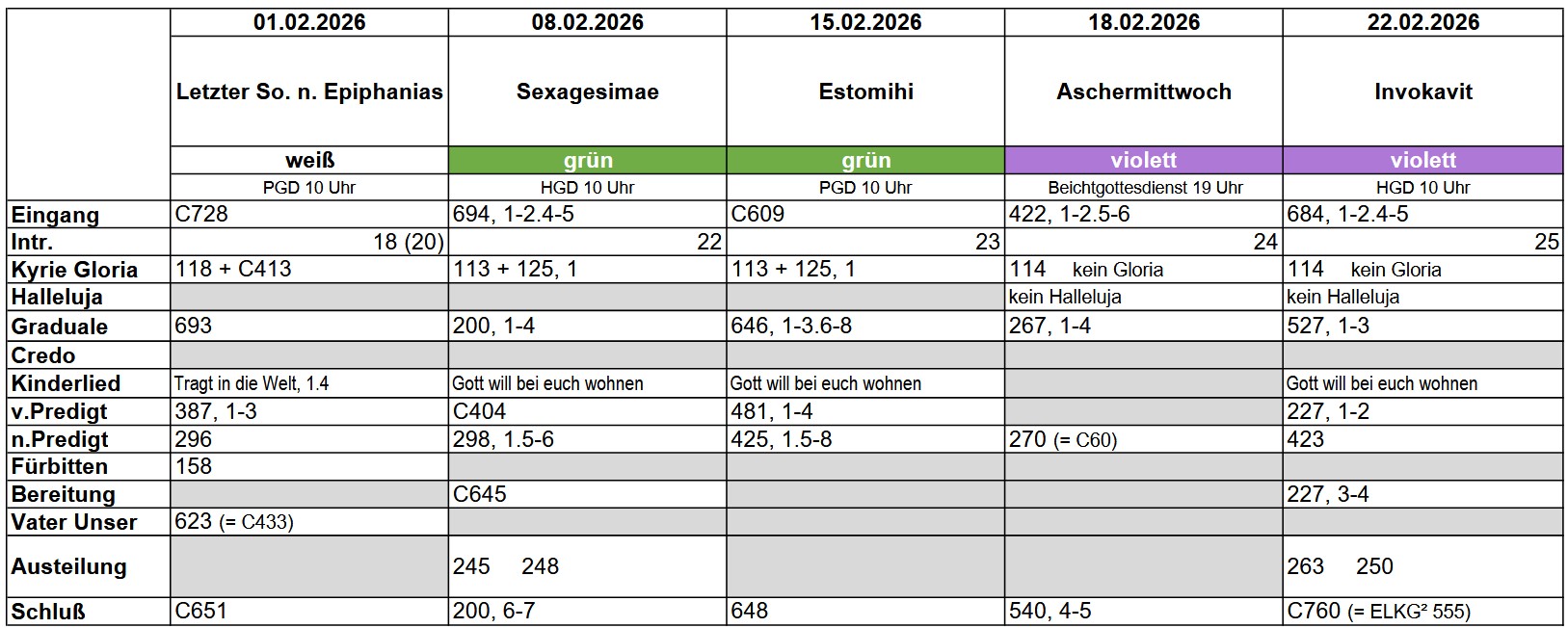 Lieder Februar 2026