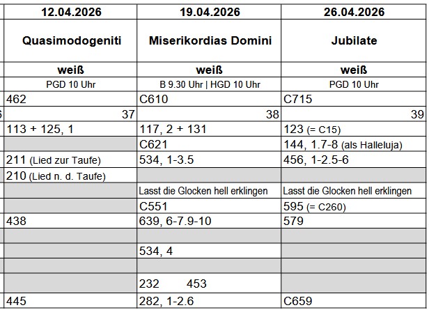 Lieder April 2026