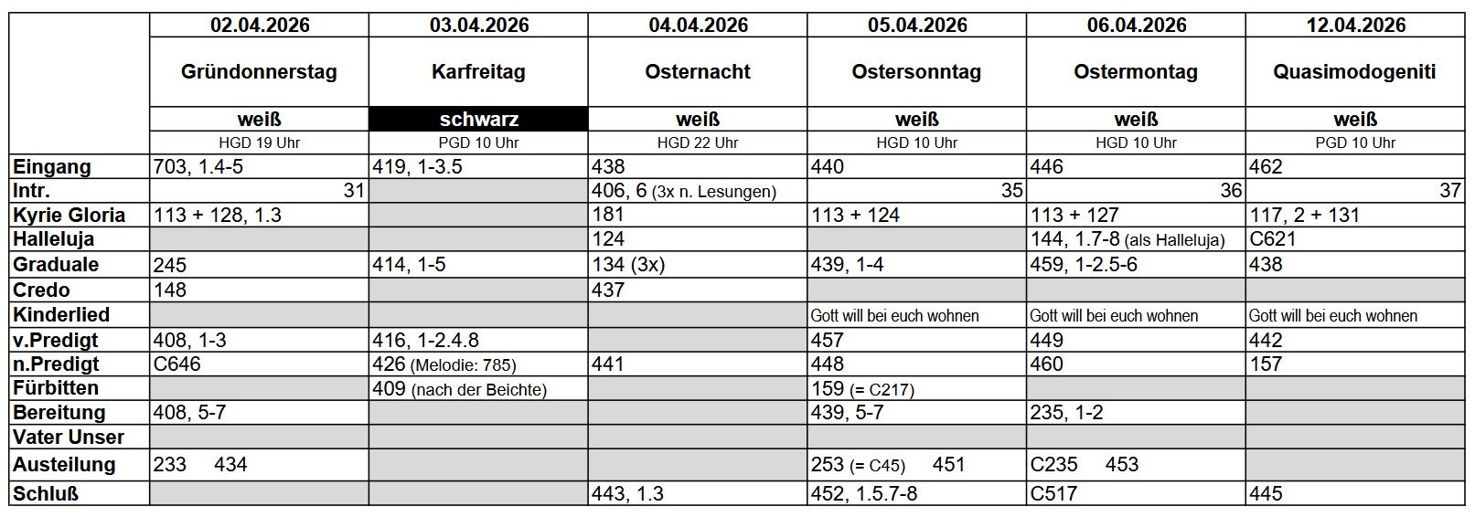 Lieder April 2026